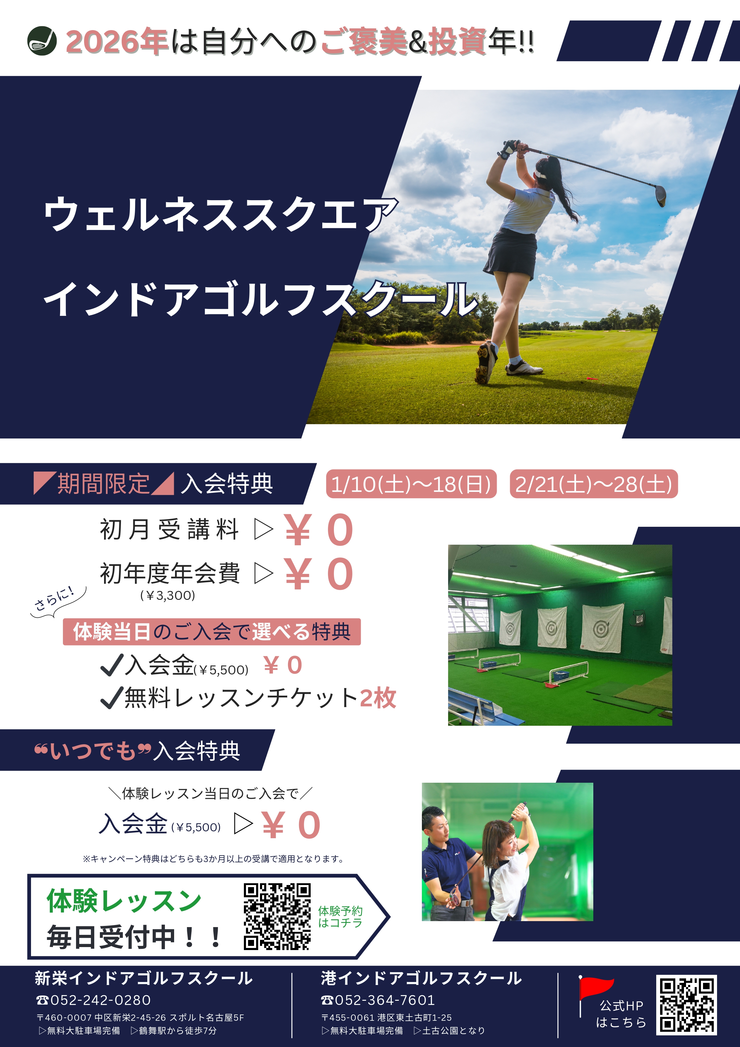 ・はじめてインドアゴルフスクールをご利用される方に限ります。